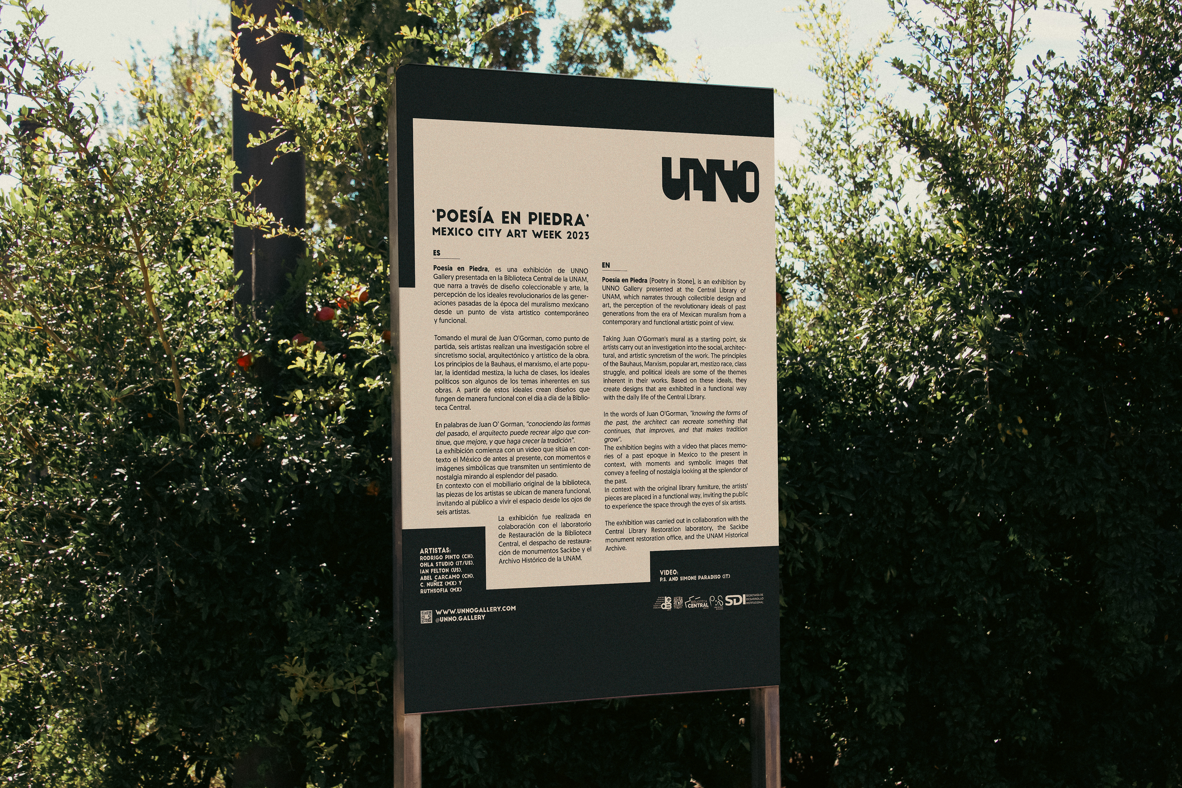For Mexico City Art Week 2023, various artists and designers were commissioned by Unno Gallery to study the UNAM library and create works that express the ideals, constructive methods and materials, and feeling of the epoque.